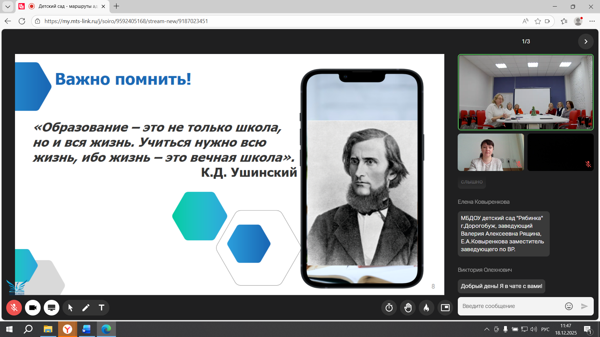 В рамках круглого стола «Вариативные модели организации адресного сопровождения педагогических работников ДОО» Виктория Викторовна представила доклад на тему «Система непрерывного образования педагогов дошкольных образовательных организаций Брянской области: ключевые направления и перспективы развития», осветив региональный опыт и стратегические ориентиры.»