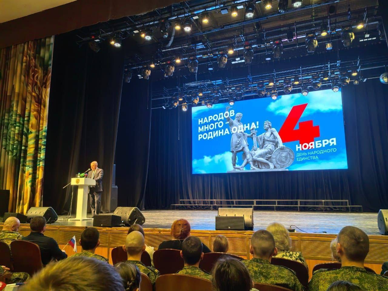 К присутствующим со сцены обратился Губернатор Александр Васильевич Богомаз: «В смутное время внешние силы стремились расколоть и уничтожить нашу страну. Но наш народ не допустил этого, отстоял родную землю. И сегодня, столкнувшись с похожими вызовами, мы решаем задачу сохранения суверенитета и независимости нашей великой страны. Год защитника Отечества – особая гордость за тех, кто в разные периоды охранял и защищал нашу Родину. За тех, кто сегодня стоит на страже государственной целостности…».