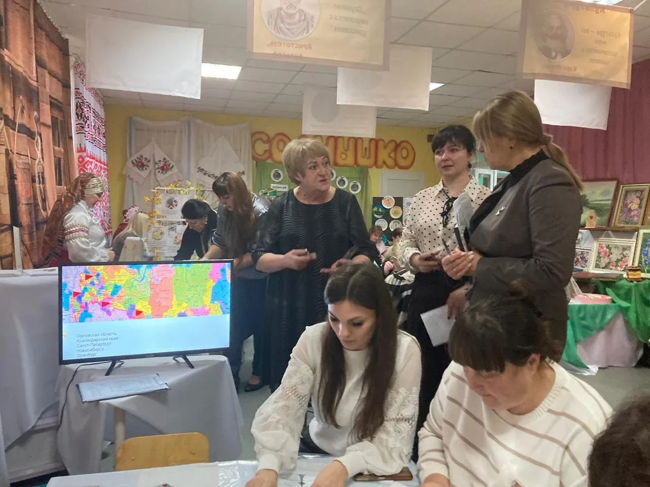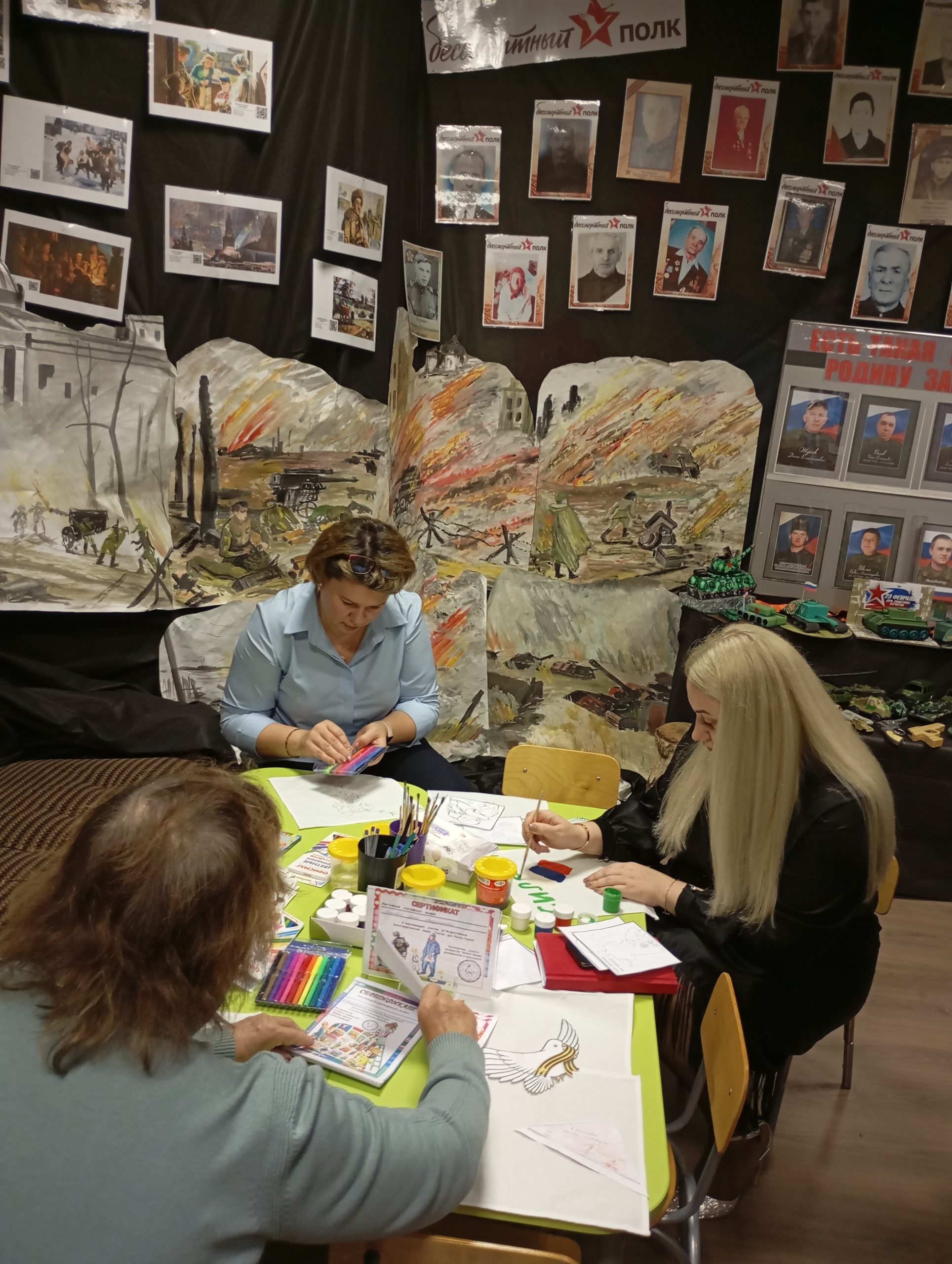 По завершению первого действия на арене инновационных образовательных практик объявили педагогический антракт, где гости семинара смогли познакомиться с действующими акциями сетевого сообщества «Живые письма дошкольников» («Теплые круги добра», «Чай для бойцов», Лоскутное одеяло «Объединяя сердца», Арт-ланч «Тарелочный пир на весь мир», «Письмо Российскому солдату», «Платок для Наших Героев»), не на словах, а в процессе непосредственного участия в них. Параллельно с этим, юные экскурсоводы и волонтёры знакомили участников с работой мини-музея «И у памяти есть голоса!», картинной галереей «Мир шедевров: ценности и смыслы», выставкой «Семейный сундучок» и приглашали на интенсив «Хоровод Дружбы».